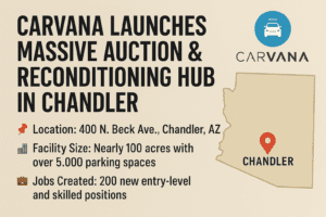 Chandler Real Estate News Carvana Launches Massive Auction & Reconditioning Hub in Chandler Read More April 8, 2025